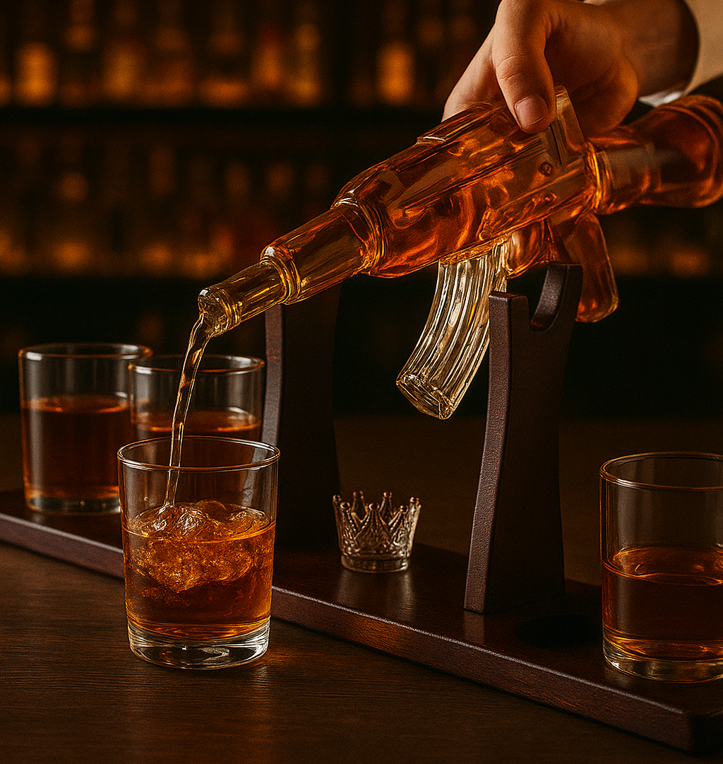 Get ready for a serious shot of style with this exclusive decanter shaped like the legendary AK-47.